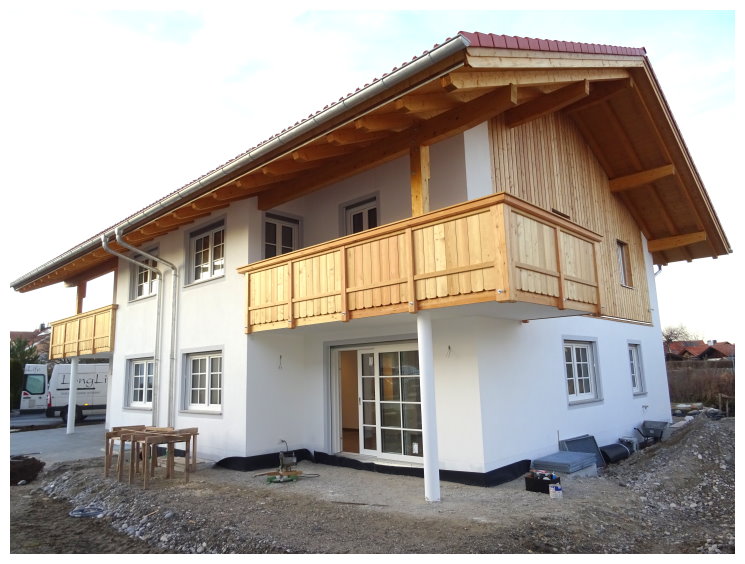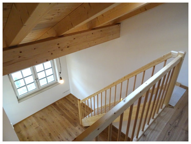 Im Haus sind hochwertige Materialien von einheimischen Firmen verbaut. Besonders hervorzuheben sind die Schreinerarbeiten in Eiche, Lärche und Fichte und insgesamt die Liebe zum Detail, mit der der Vermieter das Haus erstellt hat (siehe Ausstattung).