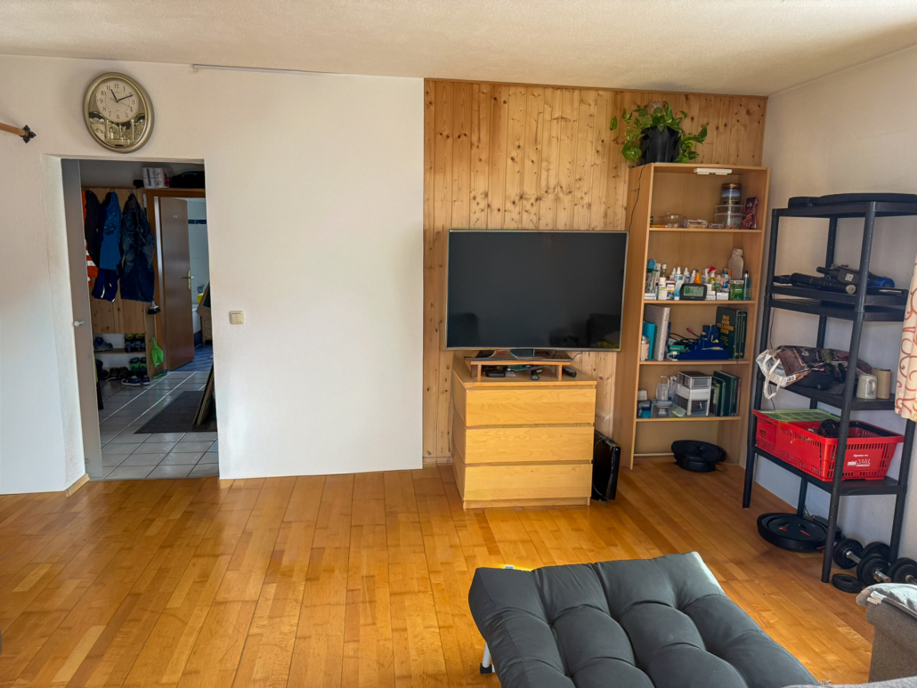 Wohnzimmer mit der Möglichkeit einen Schwedenofen zu installieren.