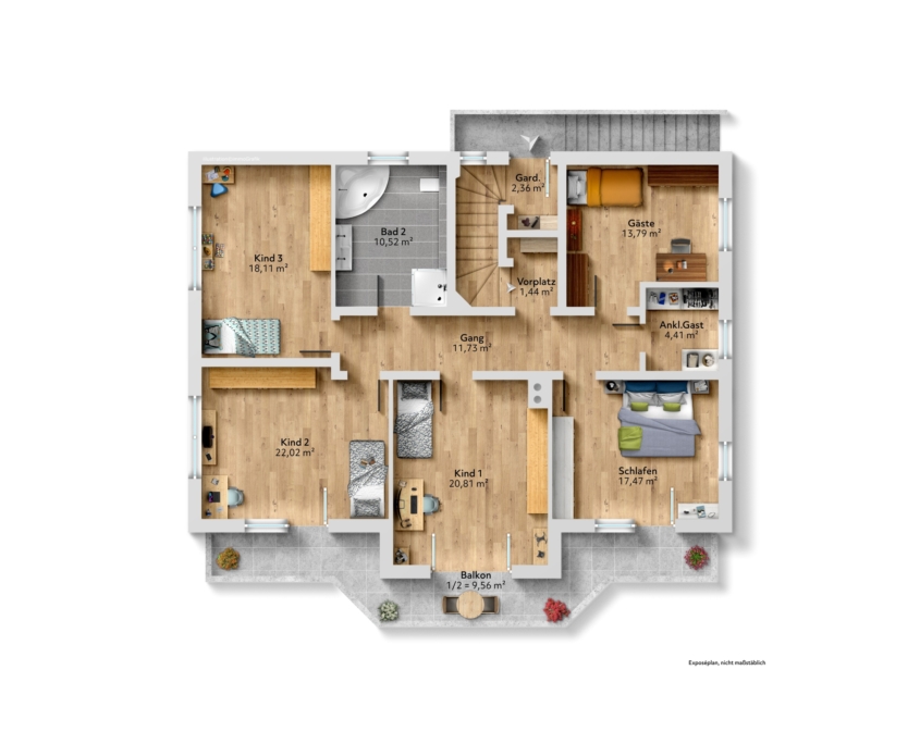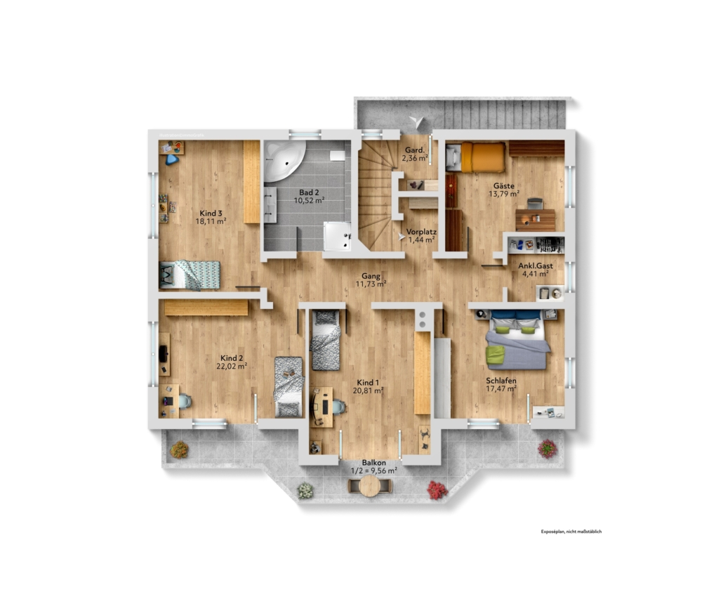 – Derzeit mit fünf großzügigen Schlafzimmern (Drei Schlafzimmer mit Ausgang zum Südbalkon)