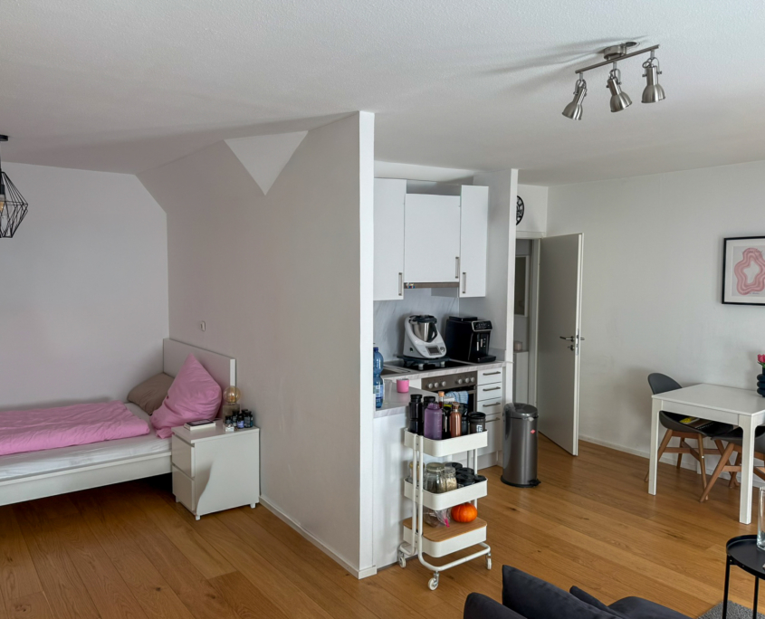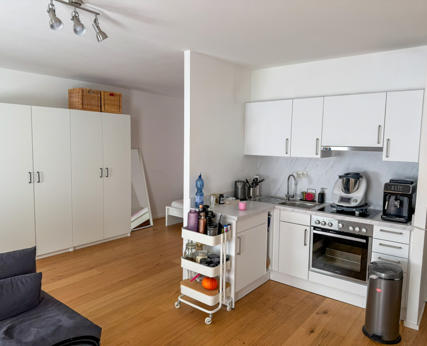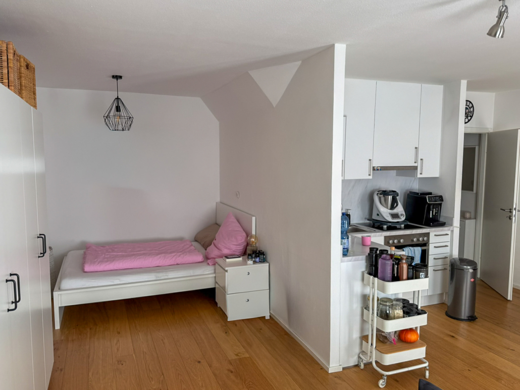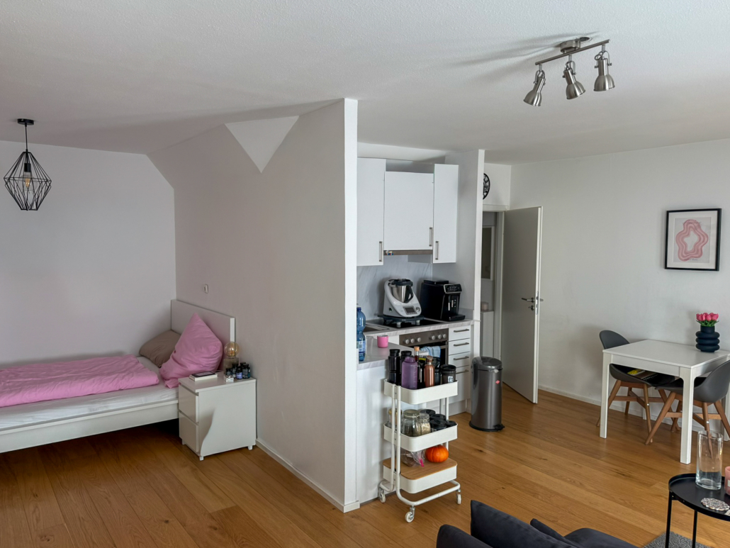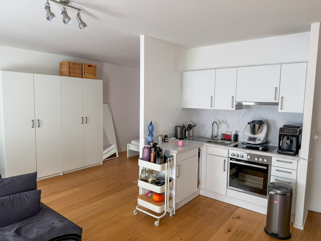 – Helles Wohn-Ess-Schlafzimmer mit Küchenzeile (inkl.) und Parkettboden