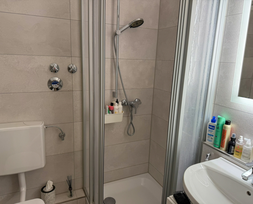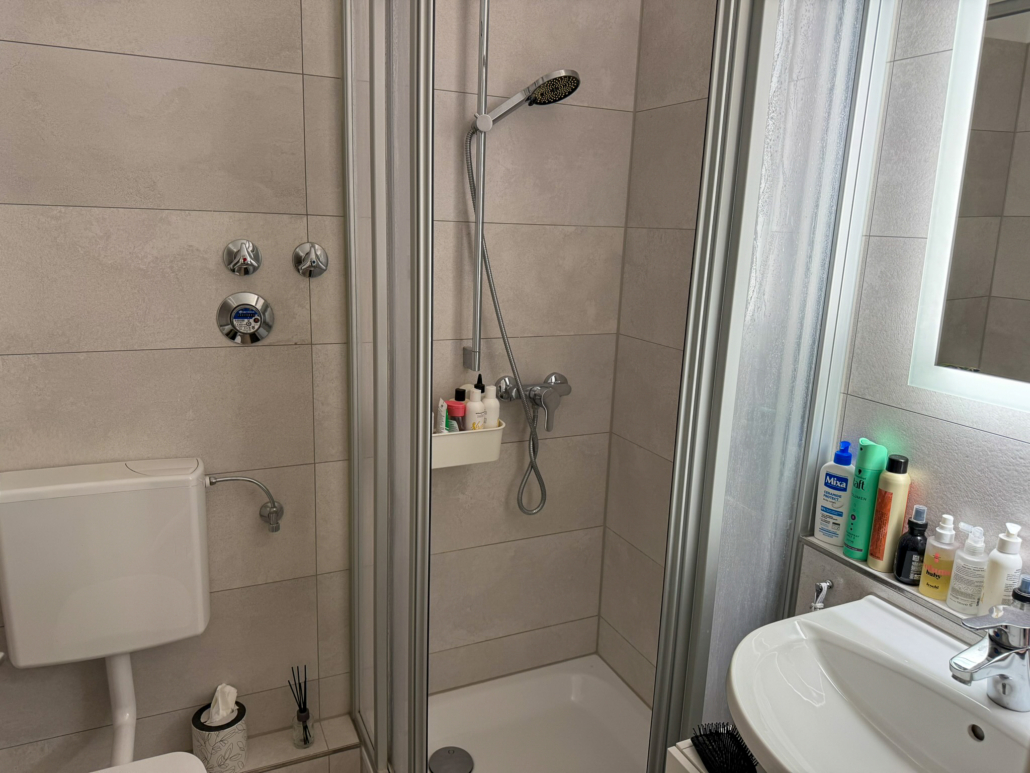 – Bad mit Dusche, WC und Waschbecken