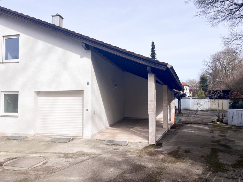 Zum Haus gehört eine Einzelgarage mit Waschbecken und ein Freisitz nach Süden