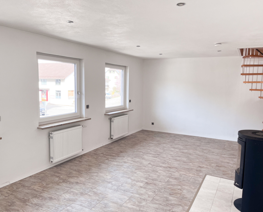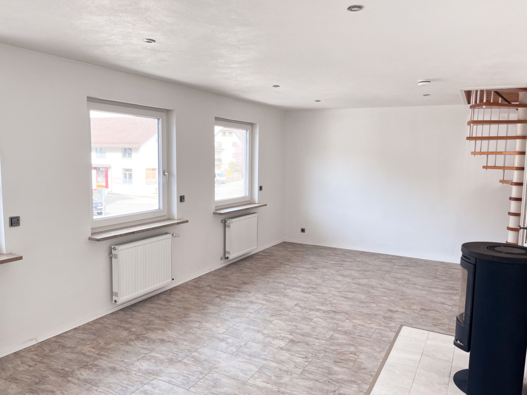 – Großer heller Wohnbereich (ehemaliger Verkaufsraum der Metzgerei) mit Fliesenboden