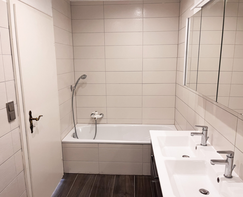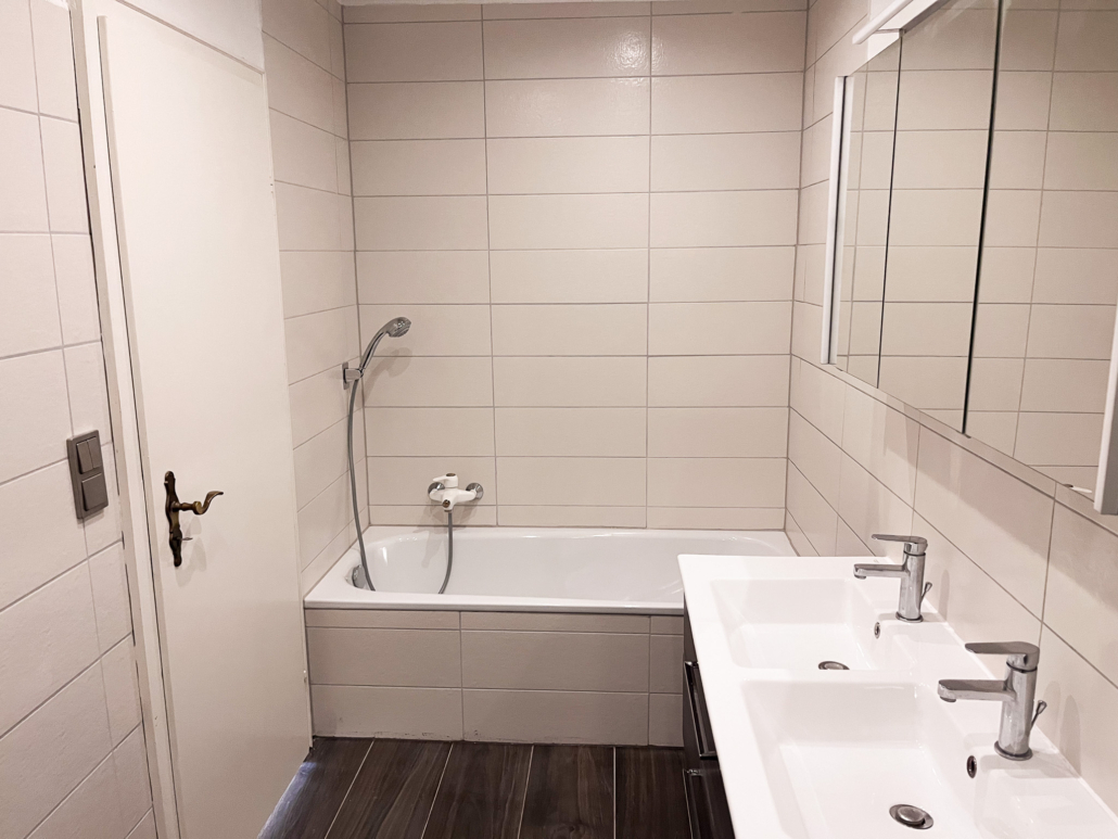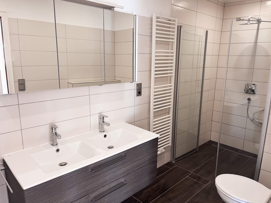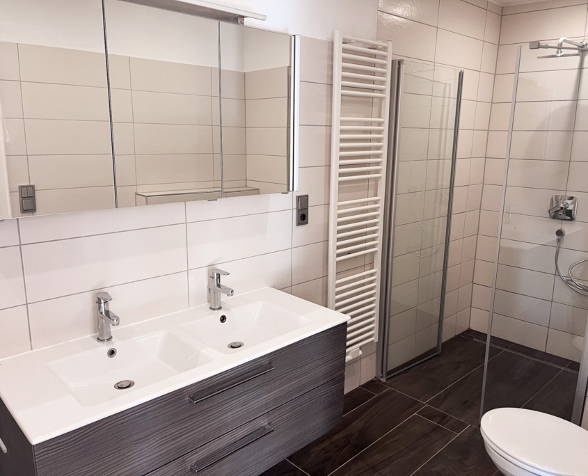 – Bad mit Wanne, Dusche, Doppelwaschbecken und WC